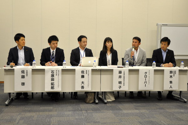 自民党の「若者の政治参加検討チーム」の会合第5回が6月5日に行われた。ミュージシャンのグローバー氏(39)と、三井物産戦略研究所研究員の藤井明子氏、NPO法人ドットジェイピー学生代表の石原田拓郎氏がゲスト参加し、「若者の声を行政に届けるには」をテーマに意見交換した。